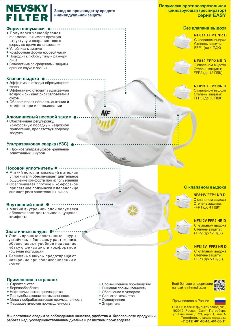 Класс защиты: FFP1, до 4 ПДК.