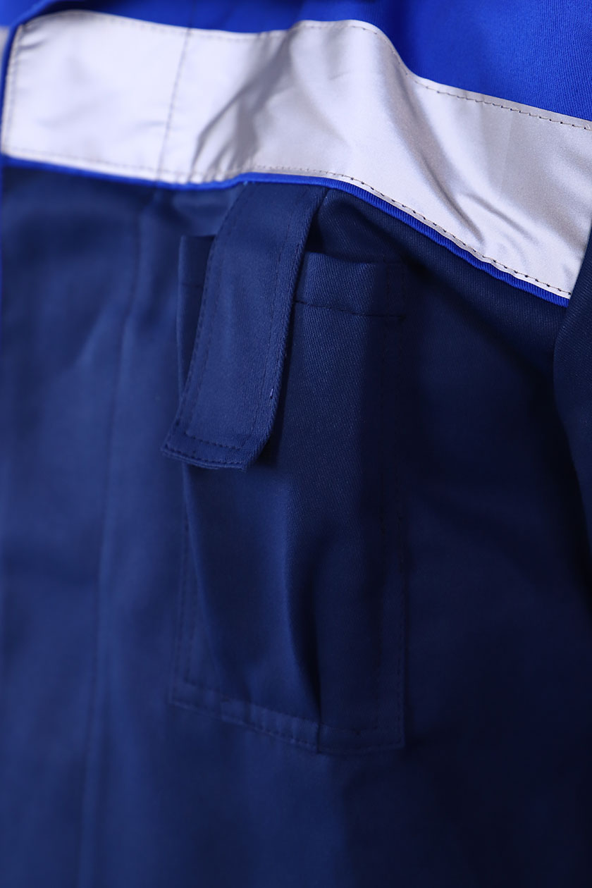 Рукава с усилением на уровне локтя, с манжетами, застегивающимися на пуговицы. В области подмышечных впадин вентиляционные отверстия. По шву притачивания кокетки СОП 50 мм.